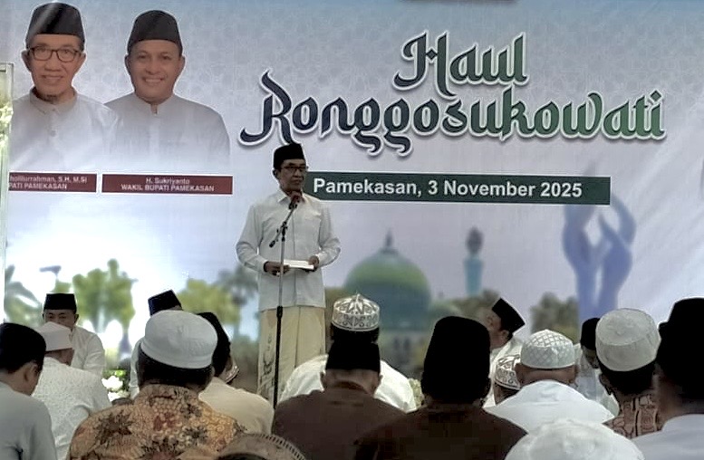 Hal itu disampaikan Bupati saat kegiatan Haul Ronggosukowati yang digelar di Masjid Agung Asy-Syuhada Pamekasan, Senin (3/11/2025) malam.