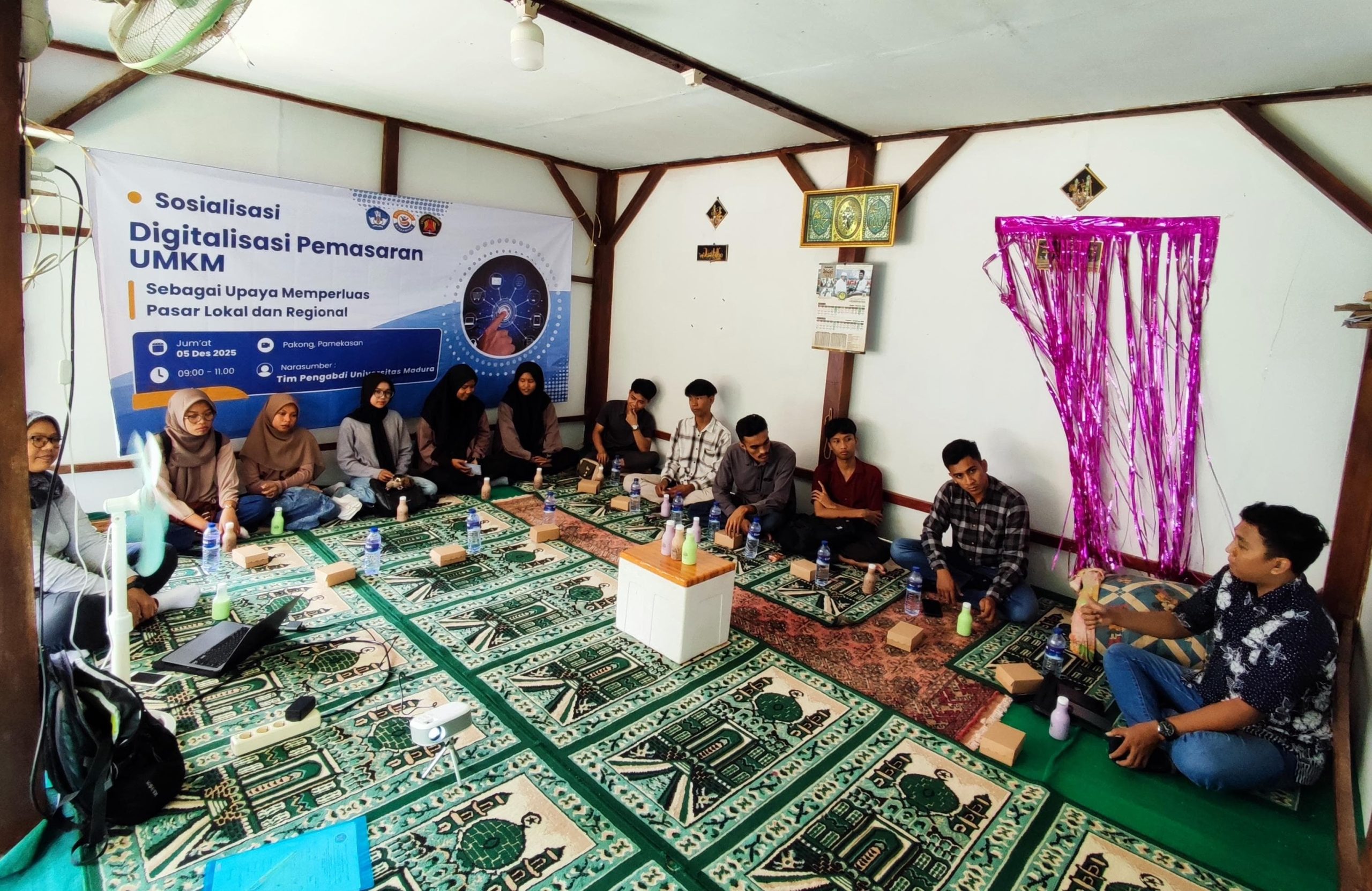 Pamekasan- Tim Pengabdian Universitas Madura, memberikan pelatihan digitalisasi pemasaran kepada pelaku Usaha Mikro, Kecil, dan Menengah (UMKM) di Kecamatan Pakong, Pamekasan, Jumat (5/12/2025).