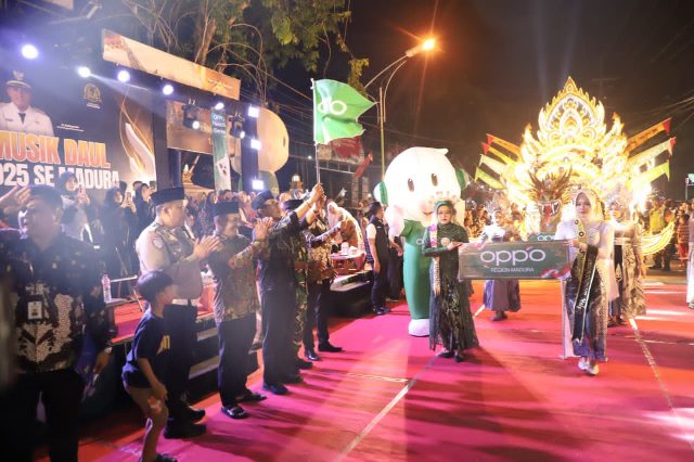Pamekasan- Bupati Pamekasan, KH. Kholilurrahman, secara resmi melepas festival musik tradisional daul se-Madura di area monumen Arek Lancor, Sabtu (23/8/2025) malam. Pelepasan festival itu, sekaligus menandai hidupnya kembali festival kesenian tradisional di Bumi Ratu Pamelingan.