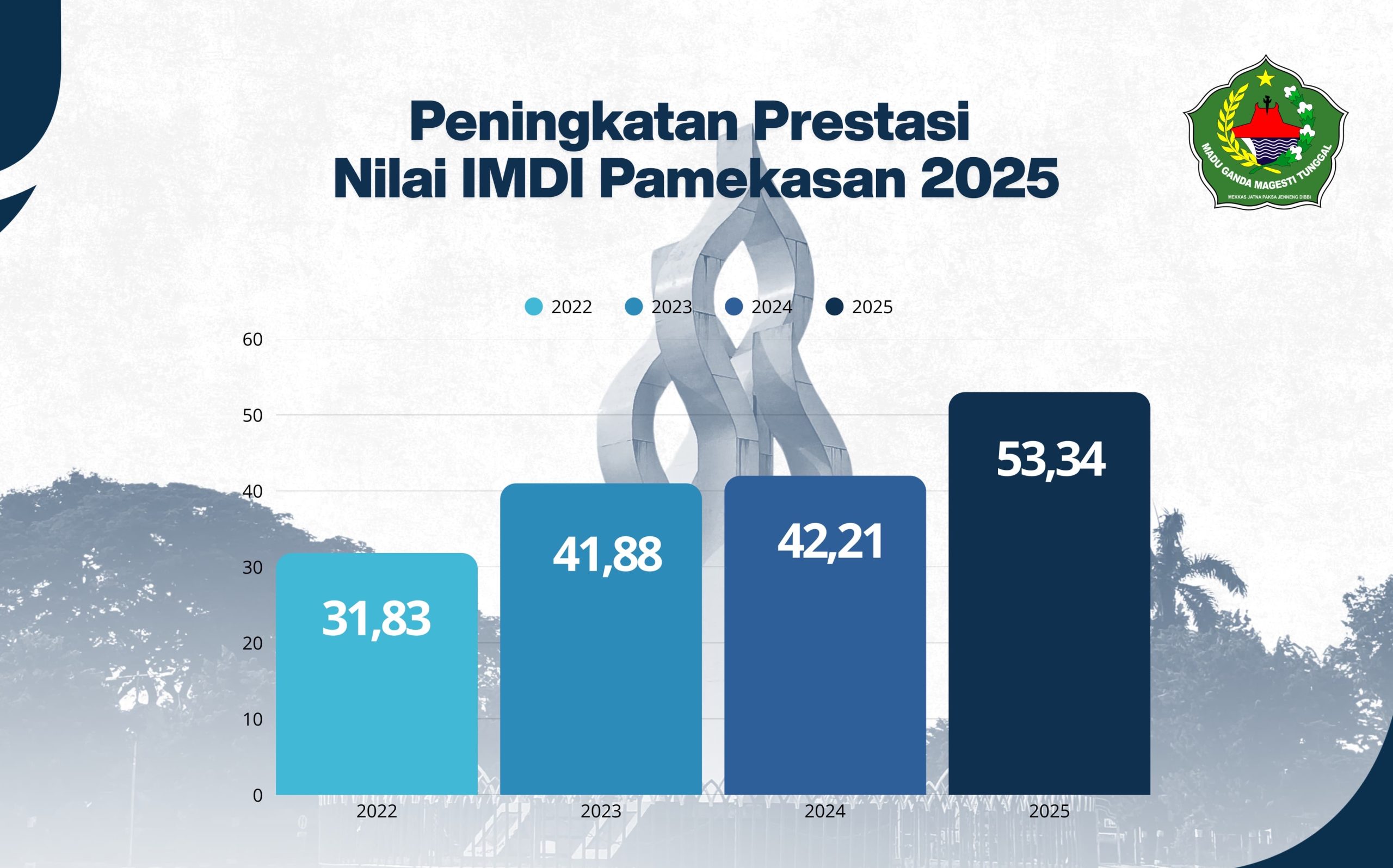 Angka itu naik di tahun 2023 menjadi 41,88. Kemudian di tahun 2024 menjadi 42,21. Peningkatan IMDI Kabupaten Pamekasan tahun 205 berada di angka 53,34 atau naik di atas angka 10 jika dibandingkan tahun 2024.